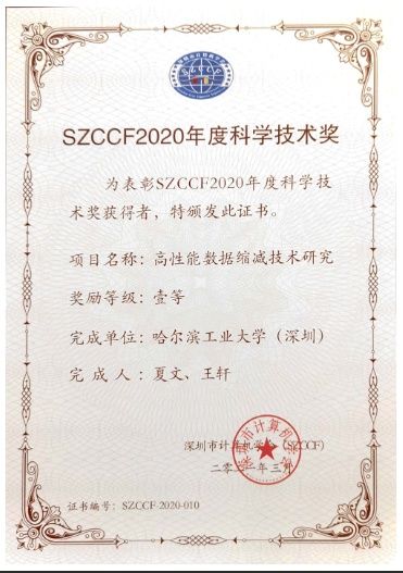 3月29日,记者从哈工大(深圳)获悉,该校计算机科学与技术学院教师夏文、王轩的“高性能数据缩减技术研究”课题荣获深圳市计算机学会(SZCCF)科学技术奖一等奖。《高性能数据缩减技术研究》项目对面向存储系统的数据去重、差量压缩、传统压缩等数据缩减技术进行了深入研究,项目聚焦通过数据缩减技术降低存储成本,在数据压缩率、压缩写入速率、压缩恢复速率等方面开展了大量研究,解决了重复数据删除、相似数据压缩和索引检索的瓶颈问题。