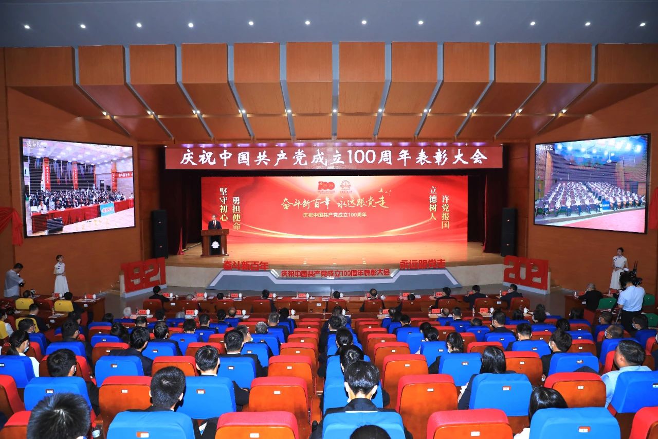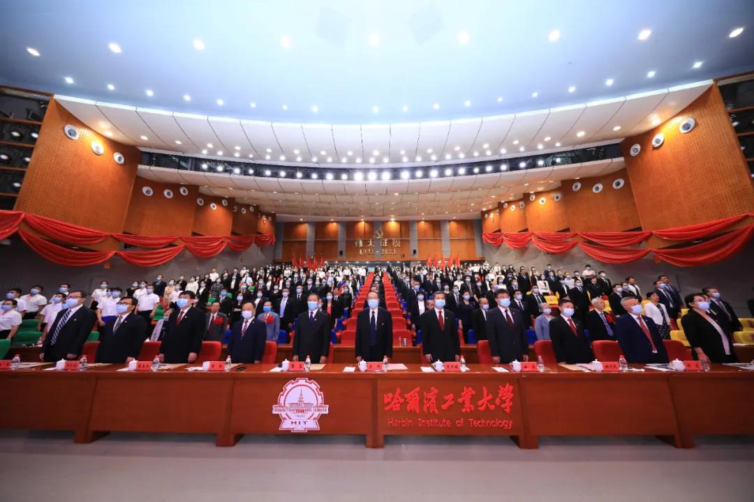 哈工大全媒体(综合 文/图)在党的百年华诞到来之际,为学习习近平总书记在庆祝中国共产党成立100周年大会上的重要讲话精神,全面弘扬伟大建党精神,进一步坚持习近平总书记贺信精神引领,“奋斗新百年 永远跟党走”庆祝中国共产党成立100周年表彰大会于7月1日下午在活动中心301剧场隆重举行。教育部党史学习教育高校第五指导组组长李健、成员王鑫,校党委书记熊四皓,校党委副书记、校长周玉,党龄达到50周年的老同志代表出席大会。