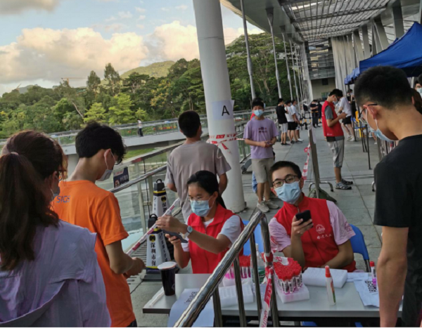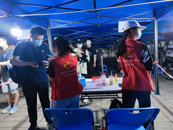 【哈工大(深圳)宣】(李文庆/文、义工联/图)今年5月至6月期间,哈工大(深圳)700余名学生志愿者助力深圳大学城开展疫苗接种、核酸检测、食堂就餐秩序维护和抗疫知识宣传等疫情防控工作,总服务时长超2000小时,在疫情防控工作中展现了哈工大(深圳)学子热心公益、志愿互助的良好精神风貌。