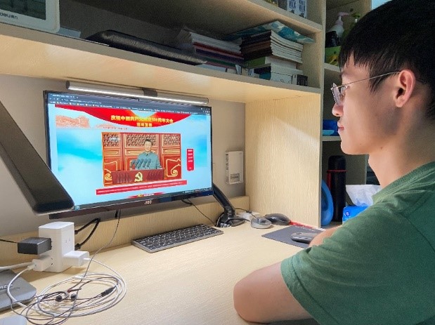 【哈工大(深圳)宣】(校团委/文、图)7月1日上午,庆祝中国共产党成立100周年大会在北京天安门广场隆重举行。中共中央总书记、国家主席、中央军委主席习近平发表重要讲话。哈工大(深圳)团委通过集中学习、线上观看、交流座谈等多种形式,组织全校团学组织收听收看大会直播。习近平总书记的重要讲话在全校团员青年中引发了强烈反响,大家纷纷表示,作为新时代的中国青年,将牢记总书记的殷殷嘱托,把青春奋斗融入党和人民事业,以实现中华民族伟大复兴为己任,增强做中国人的志气、骨气、底气,不负时代,不负韶华,不负党和人民的殷切期望。
