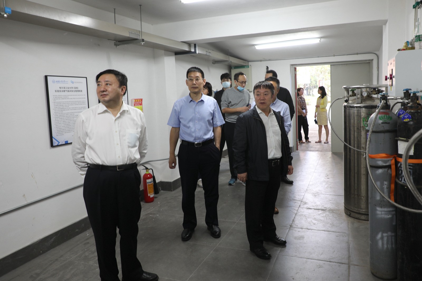 会前,哈工大(深圳)党委书记吴德林,哈工大副校长、哈工大(深圳)常务副校长甄良,哈工大(深圳)副校长姚英学、校长助理梁大鹏、魏军等与校外专家一同实地开展实验室安全检查。