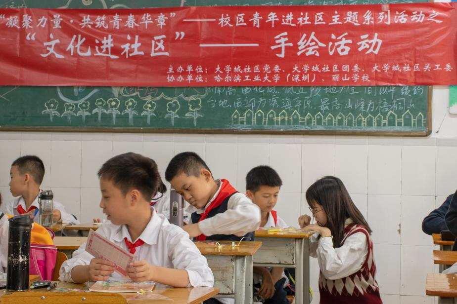 【哈工大(深圳)宣】(义工联合会/文、图)高校社团走进社区校区,大手牵小手会碰撞出怎样的火花?连日来,深圳校区摄影协会、魔术协会、青年创客俱乐部、手绘社、逻辑思维社、演讲与口才社等学生社团走进丽山学校,先后为500余名中小学生带来了丰富的课外课程,为中小学生丰富知识、开阔视野开辟了新的渠道。