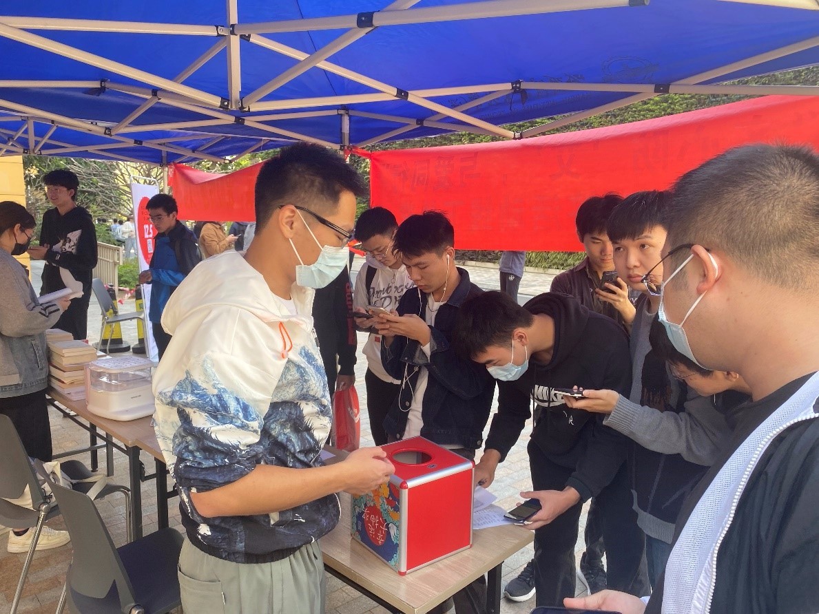 在12月10-11日举办的“以我热血,点燃他人生命之光”公益献血活动上,志愿者们化身“爱心使者”,为前来献血的同学提供相关讲解与帮助,并献上小礼品。在两天的时间里,166名师生挽起袖管,血液捐赠总量达59900毫升,为需要血液的人们献上了哈工大(深圳)师生的爱与温暖。