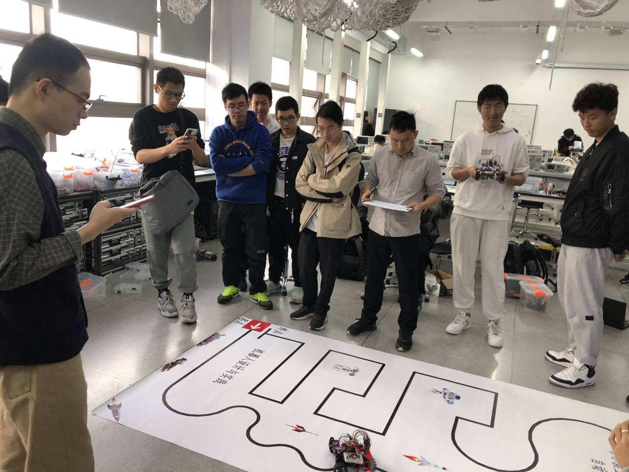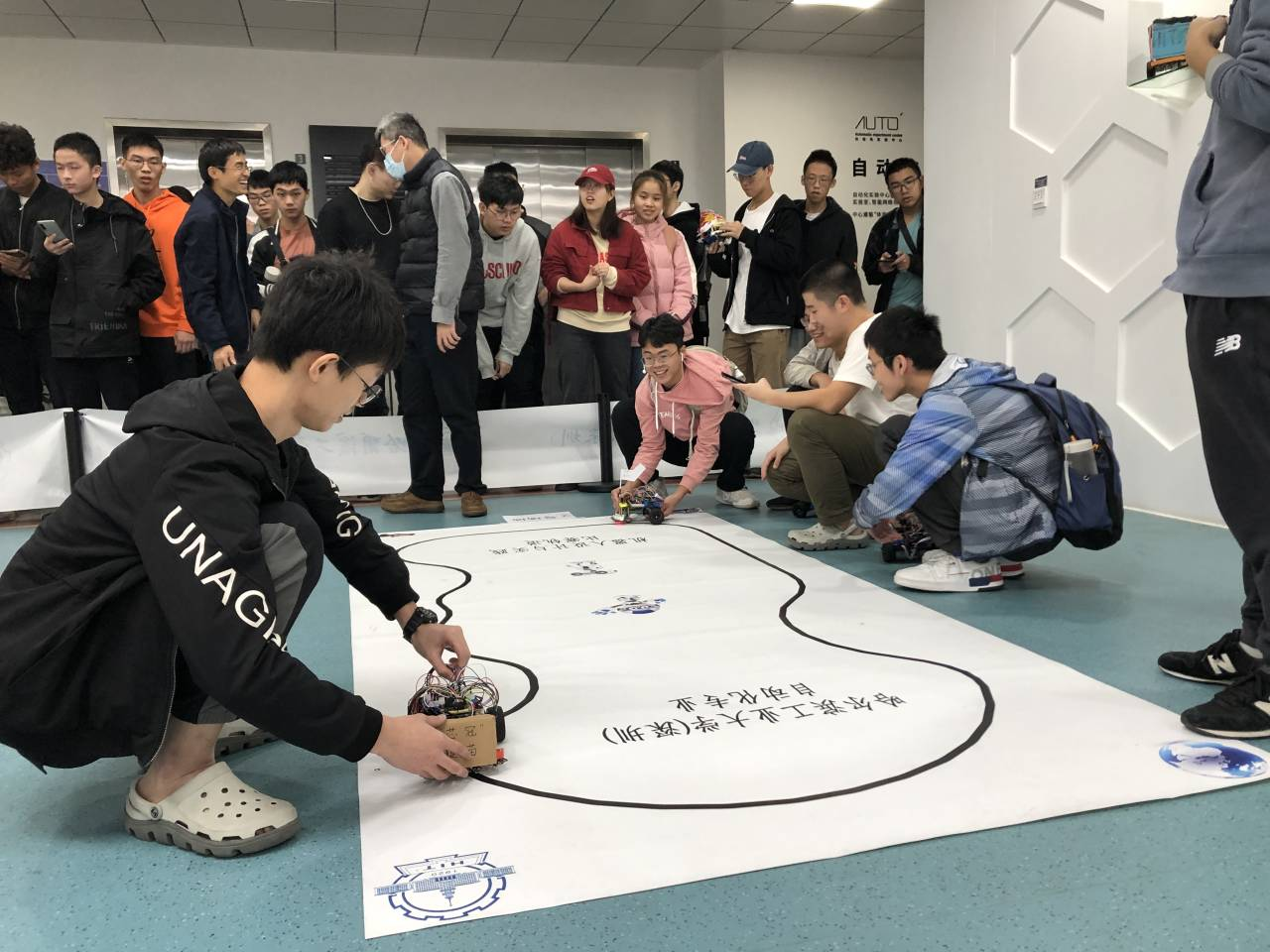 【哈工大(深圳)宣】(侯冠宇 何阳/文、图)一架架轮式机器人在赛道上飞驰、赛场上尖叫呐喊此起彼伏……这样热闹的场景,很难想到是哈工大(深圳)一门课程的考试现场。日前,机电工程与自动化学院自动化专业举办的“九天创新杯”机器人竞速赛吸引了同学们广泛关注,而这场比赛,正是《机器人设计与实践》课程的实验考查现场。