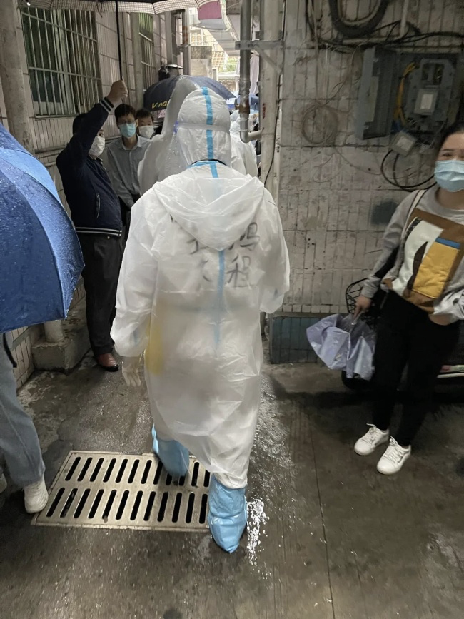 南园村是一个较大型的城中村,居民人数多、情况复杂。除了在固定的核酸检测点协助扫码、整理物品、维护秩序等保障工作,突击队员们还承担了协助社区及医护人员开展流调、核对信息、统计数据、发放物资,对行动困难人员、居家隔离人员上门核酸采样等工作。