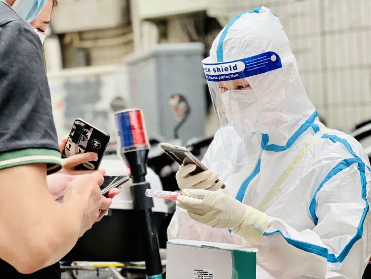 南园村是一个较大型的城中村,居民人数多、情况复杂。除了在固定的核酸检测点协助扫码、整理物品、维护秩序等保障工作,突击队员们还承担了协助社区及医护人员开展流调、核对信息、统计数据、发放物资,对行动困难人员、居家隔离人员上门核酸采样等工作。