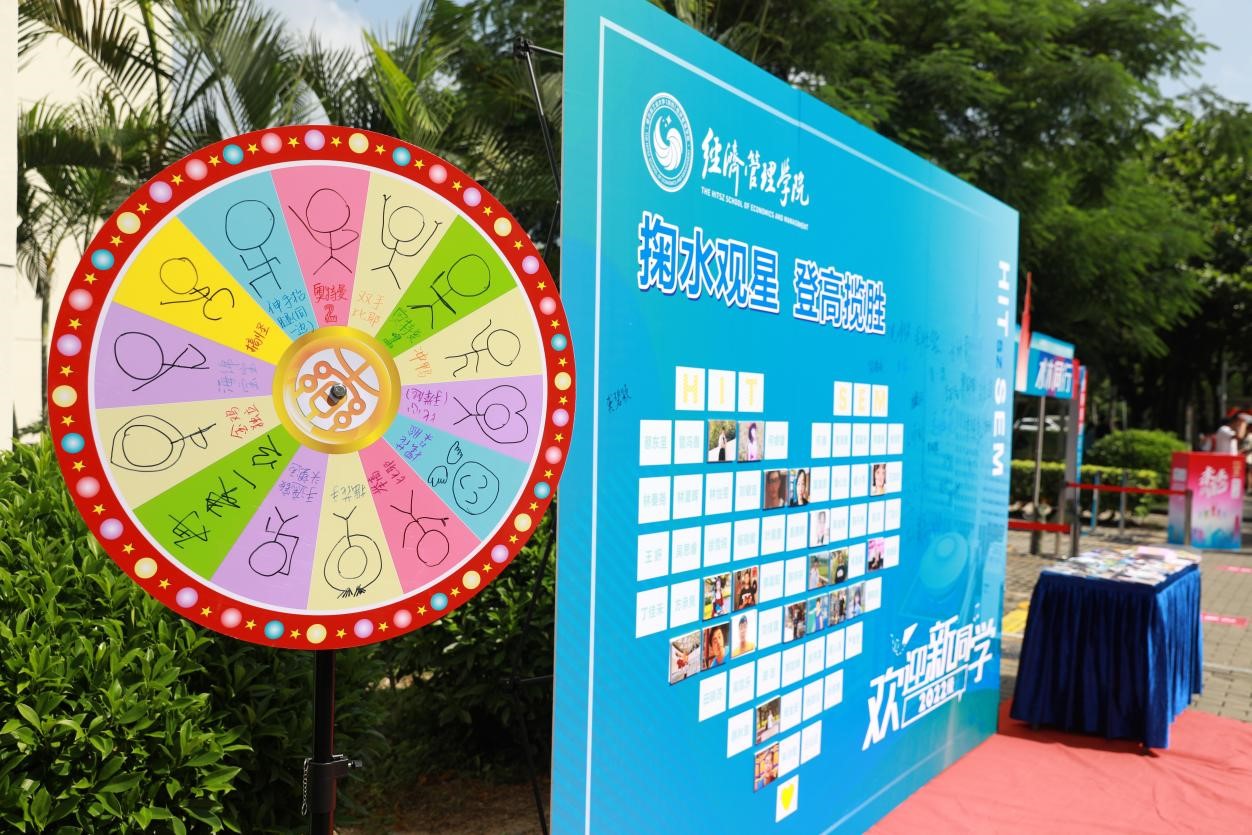 机电工程与自动化学院的迎新现场则“硬核”又“高级”,请出了战绩累累的“南工骁鹰”战队机器人坐阵,酷炫的机器人在现场展示各种“看家本领”,吸引了众多粉丝拍照留念。作为2022级新生最多的学院,机电学院召集了80余名志愿者在现场服务新生,让新生充分感受到大家庭的温暖。“花样”百出的经济管理学院则为新生准备了丰富的入学仪式,在入学前学长学姐就准备好了迎新视频,欢迎新生的到来。迎新现场,笑脸墙、飞机票、大转盘……让新生目不暇接,全场充满欢声笑语,可以说“仪式感”十足。新生“大礼包”也包罗万象:既有印有经管学院院徽的U盘,也有广受欢迎的雨伞;最用心的当属新生祝福“漂流瓶”,帮助新生破冰,更快地融入大学生活。各学院还开设了“绿色通道”,把关心、关爱送给每一位需要帮助的同学。