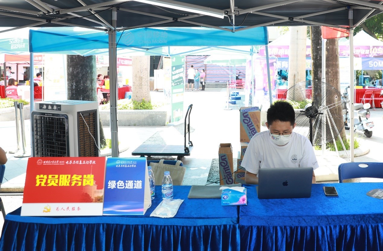 电子与信息工程学院在迎新现场设置的“党员服务岗”成为一道靓丽的风景线,这一抹“党员红”是新生无条件信任的依靠。学院2022级硕士研究生辅导员熊晶玲作为“党员服务岗”的一员,化身“答题小能手”,为新生答疑解惑。快递、网络、班车……新生能想到的所有问题,在这里都能找到答案。“有党员和辅导员的双重身份加持,使我义不容辞为学生答好疑、服好务,真正做好他们的‘大家长’”,熊晶玲说。