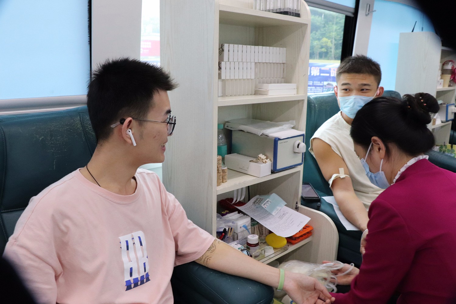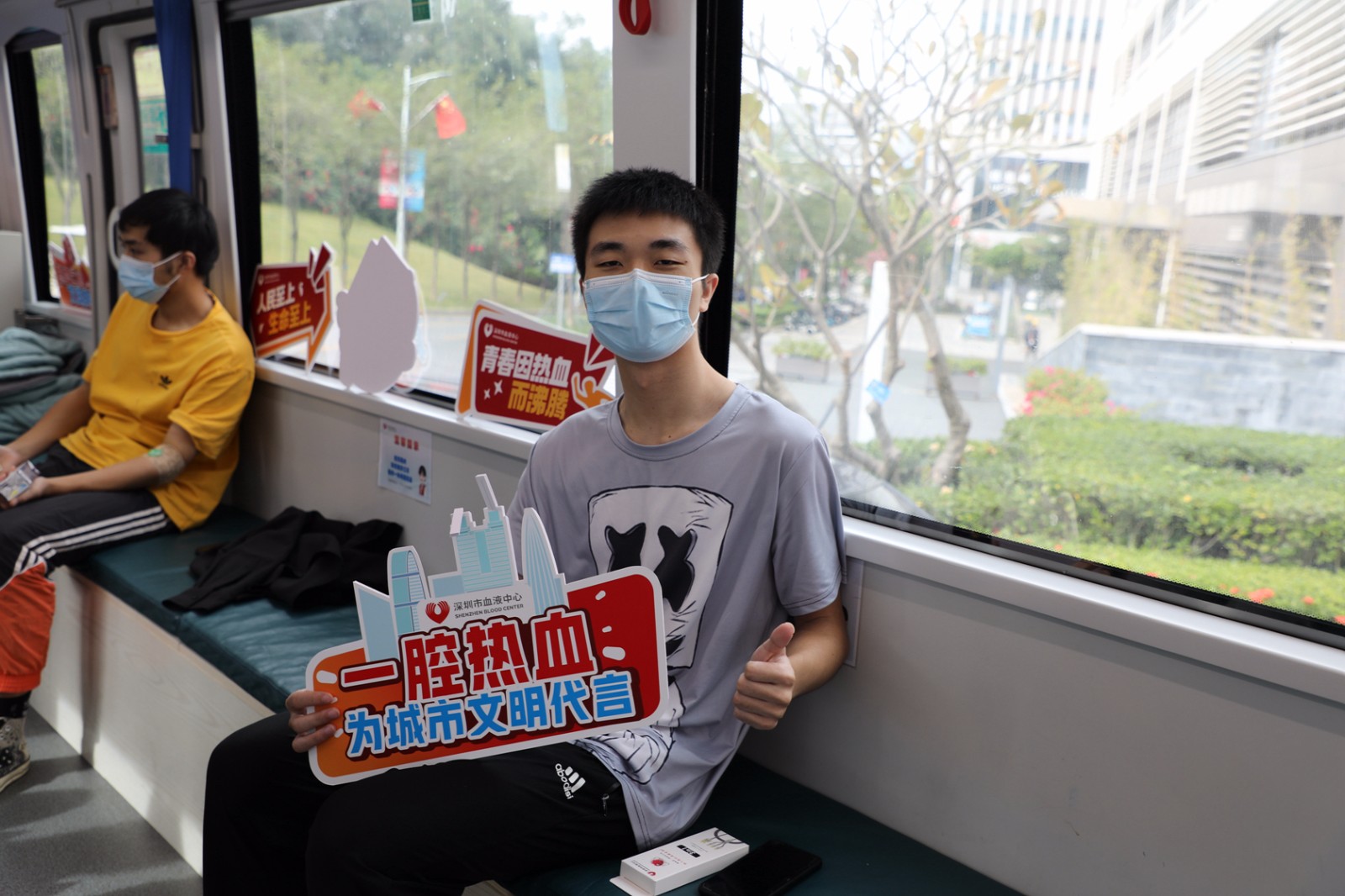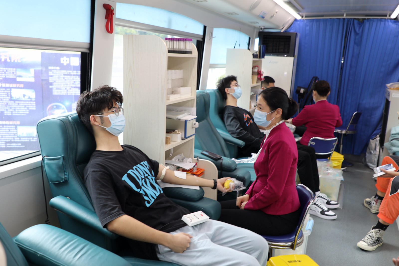像小谢一样的热心肠,深圳校区还有不少。三天里,在位于活动中心与A栋教学楼前的两处献血点,前来咨询的师生络绎不绝,其中既有首次尝试的“献血小白”,也有多次撸起袖子的“红色达人”,甚至还有吃完饭遛弯时顺便上车献了个血的“围观群众”。“哈工大的师生非常热情也非常朴实,很多人话不多说就来填表了。”深圳市血液中心的工作人员说,在哈工大的三天时间让他们既感动又难忘,哈工大的师生们好样的!