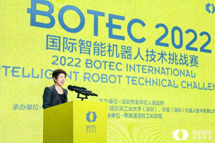 哈工大深圳校区党委副书记张国宏介绍了哈工大在机器人领域的突出成果,以及深圳校区为粤港澳大湾区经济社会发展做出的积极贡献。她表示,此次“政府、高校、企业”三方共同承办BOTEC大赛,是推动粤港澳大湾区人工智能与机器人领域人才培养、科技进步和成果转化应用的有力之举。未来,深圳校区将继续携手兄弟高校及科技领军企业,把顶尖科技人才培养平台做好做实,引领粤港澳大湾区高新技术产业发展。