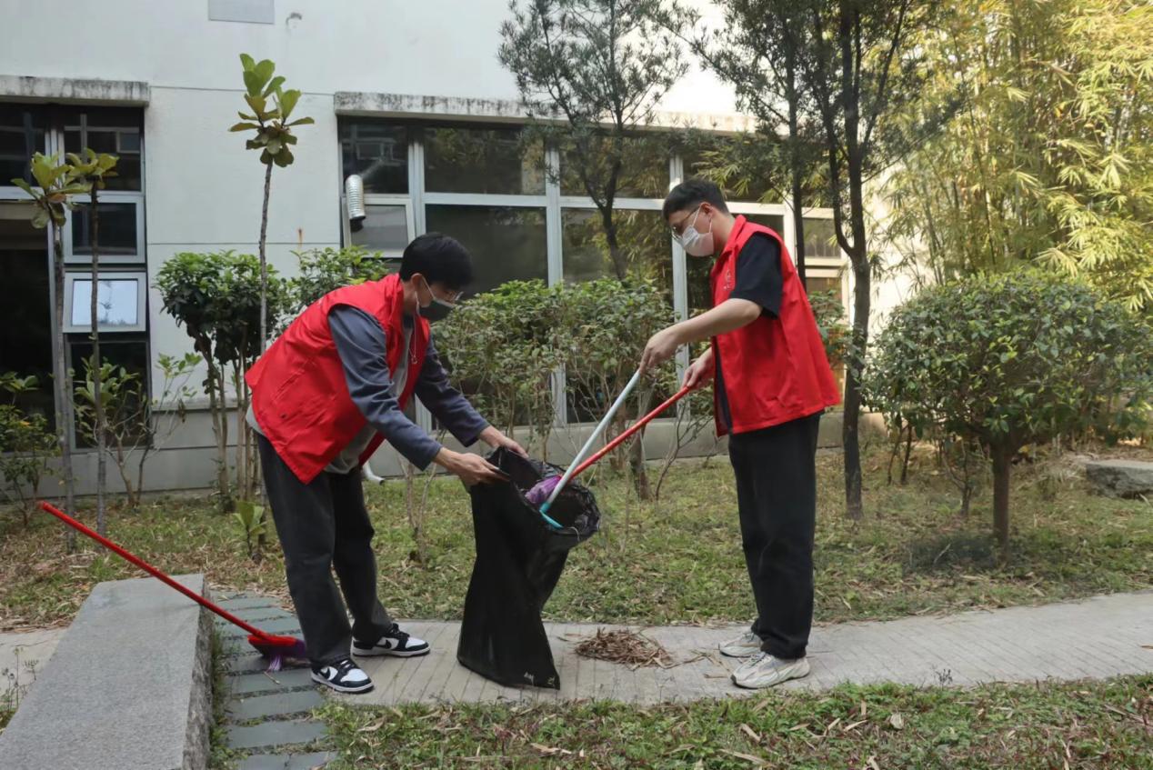 植树现场热火朝天,校园内的公益环保活动同样如火如荼。计算机科学与技术学院义工队前往大学城附近的共享单车停放点,开展“扶共享单车,捡校园垃圾”志愿环保活动,在收获劳动快乐的同时为打造校园周边的美好环境献力。建筑学院义工队组织志愿者开展校园环境美化活动,大家携手物业工作人员在校园内捡拾未被扔进垃圾桶的垃圾,共同维护干净整洁的校园环境。