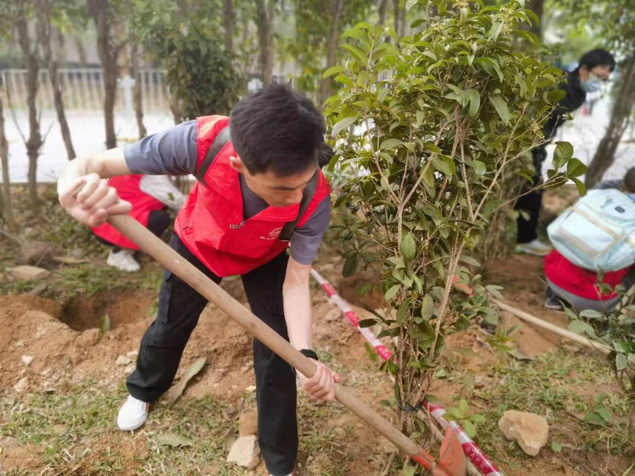 当天上午,深圳校区12支义工服务队来到西丽生态园开展义务植树活动。同学们身着红马甲,松土、种树、填土、浇水……大家共同种下了10棵桂花树。同学们表示,通过植树活动进一步领悟到“绿水青山就是金山银山”的深刻内涵,今后将积极投身生态文明建设,参与“山海连城绿美深圳”建设行动,让绿色成为高质量发展的亮丽底色。