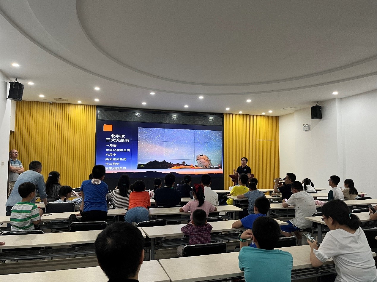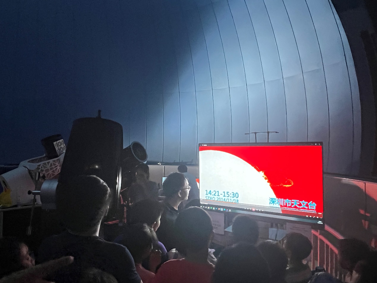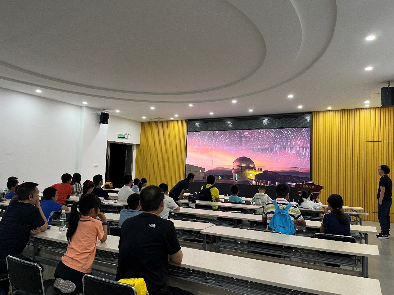 “流星是怎么形成的?”“怎么衡量星星的亮度?”“该怎么拍流星才最好看?”晚上7点,萌娃们到达深圳市天文台,热情高涨,向深圳市天文台郑建川博士“好奇”提问,并一一得到详细解答。深圳市天文台精心制作的炫酷视频让萌娃们看得目不转睛,参观30厘米口径大视场光学天文望远镜让萌娃们惊呼连连。大家纷纷表示,星辰大海实在是太迷人啦!活动在大家惊叹中落下帷幕。