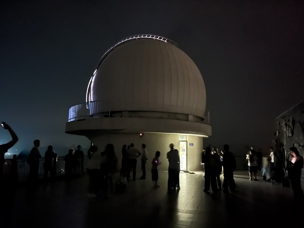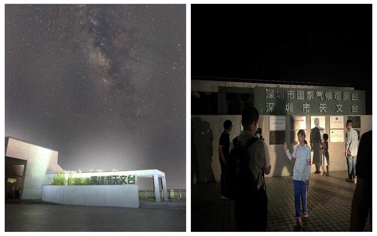 深圳市天文台位于大鹏新区西涌海滩东侧崖头顶,距校区约90公里,海拔较高,站内布设有80厘米口径反射式光学天文望远镜、30厘米口径大视场光学天文望远镜、三通道全日面太阳望远镜等多个大型天文观测设备,是天文观测的“风水宝地”。