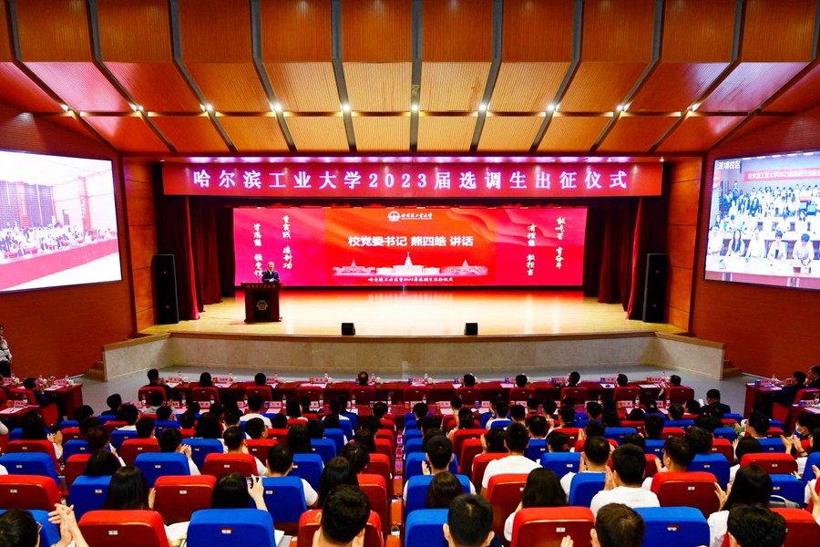 黑龙江省委组织部副部长于志伟、副校长沈毅出席仪式并在书法作品《哈工大选调生》上共同拓盖2023届选调生启程之印。仪式由校党委副书记、副校长陈蕊主持。