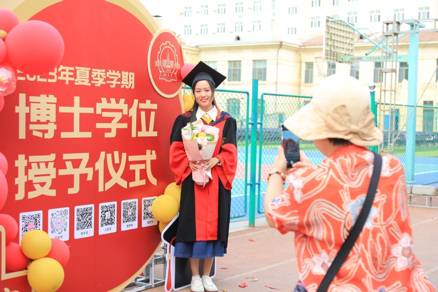 哈工大全媒体(张又元/文 辛然 李依然 谢梁晖 张钧瑞/图)6月18日,哈工大2023年夏季学期博士学位授予仪式在哈工大博物馆礼堂和深圳校区同步举行。博士生家长和亲友们在土木楼体育场线上观礼,200余万人次通过官方全媒体平台观看直播。校长韩杰才深情寄语学子并同出席典礼的校学位评定委员会委员及各学院(部)相关负责人逐一为毕业生援正流苏、授予学位。