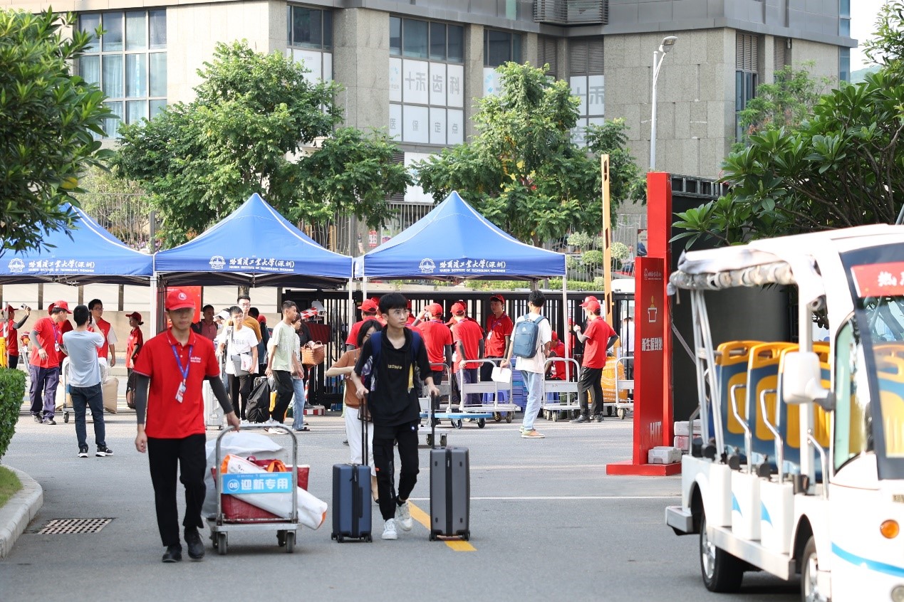 与此同时,哈工大(深圳)以多种形式为新生报到“减负”:全新上线的迎新报到系统,守候在大学城地铁口的引导志愿者、把新生及家长接回校园的摆渡车,校园内忙碌着的“红马甲”物业人员,穿梭在校园四处的电瓶车……在家长等候区,一位妈妈对“二宝”说:你看哥哥的学校这么好,以后你也努力考来这里哟。