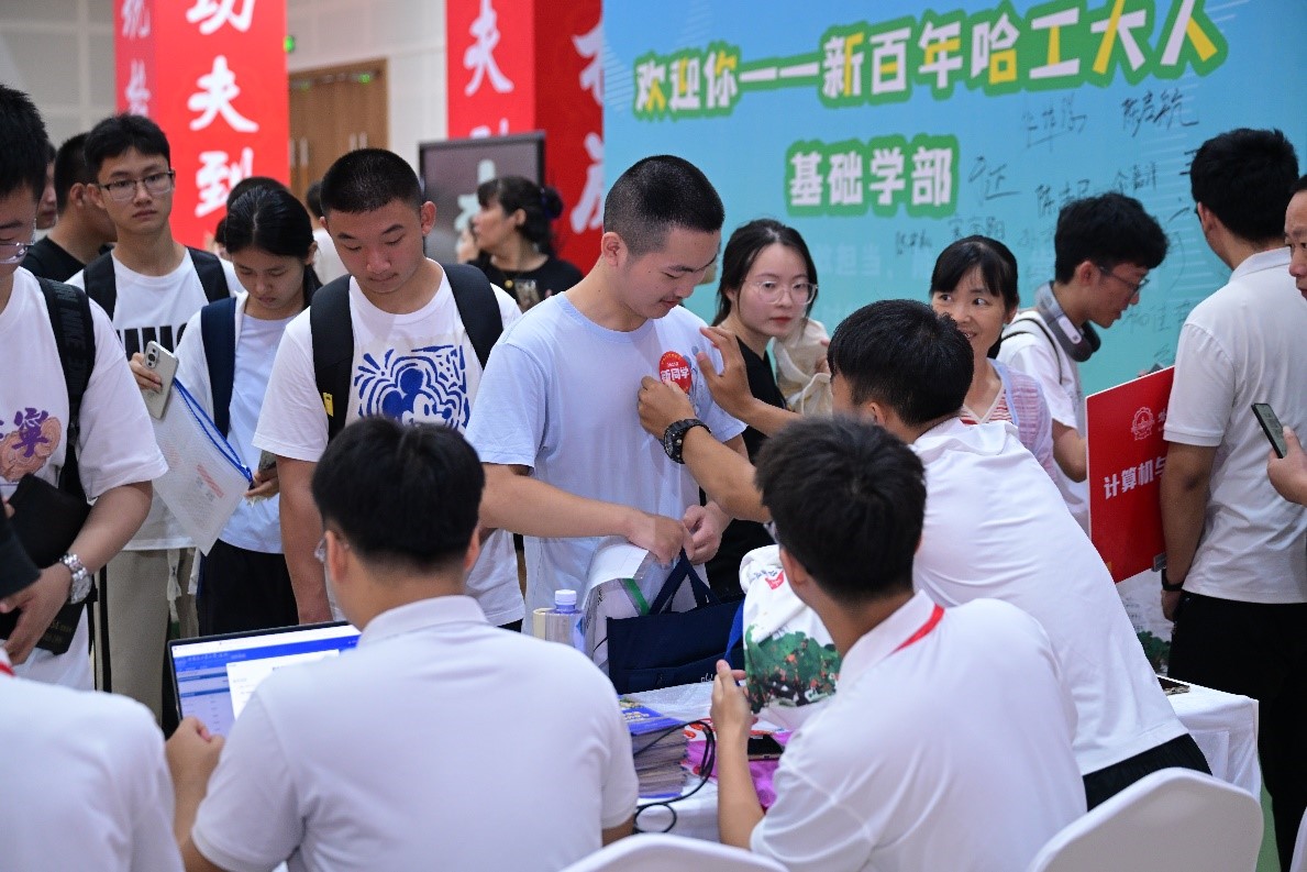 2023级新生姚迪硕在师生活动中心完成报到手续后,发现自己有了一个“意外收获”:不经意间,他已经会哼唱《哈工大之歌》了。
