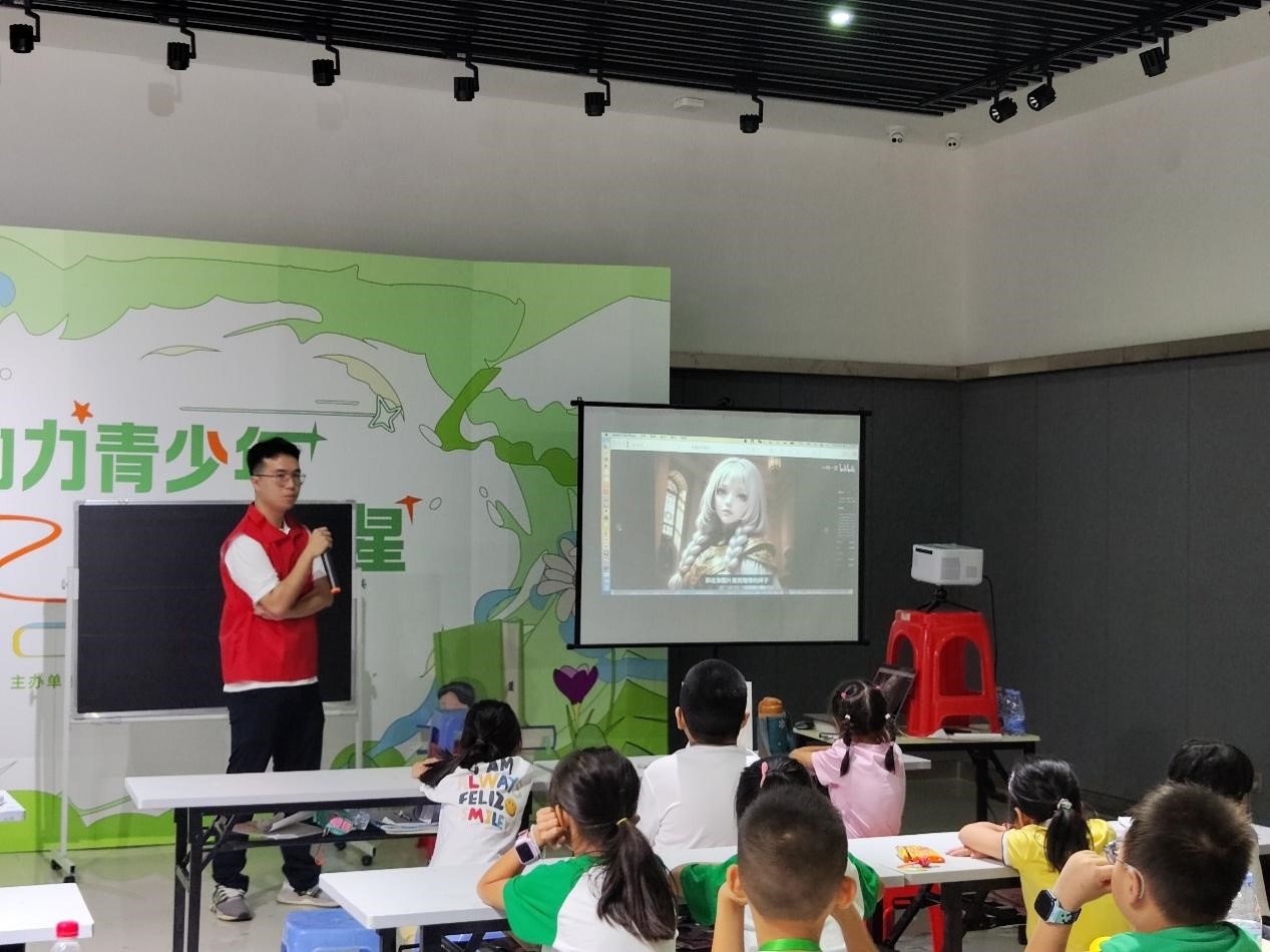 活动伊始,志愿者带领小朋友们了解AIGC的发展历程,让大家了解到这是一个能让电脑变得更“聪明”的技术。随后,志愿者与小朋友们一起走进ChatGPT,亲身体验与AI的互动。在志愿者的引导下,小朋友们与AI进行对话,亲手创建了令人惊艳的AI绘画图像,带领小朋友们走进了一段充满创造力和想象力的科技之旅。