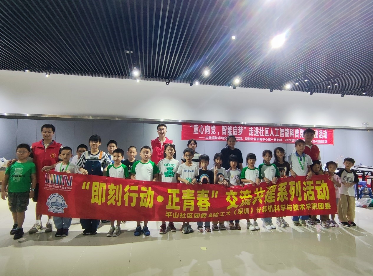 【哈工大(深圳)宣】(邓广博 董明龙/文 邓广博/图)日前,哈工大深圳校区计算机科学与技术学院大数据技术研究中心党支部携手智能计算研究中心第一党支部、2022级计算机专业硕士生4班团支部走进平山村社区,开展“童心向党,智能启梦”人工智能科普进社区党团共建活动,来自平山村社区的30余名小学生变身“小小人工智能体验员”,深入体验了一把当下最火的“黑科技”——AIGC(生成式人工智能)。