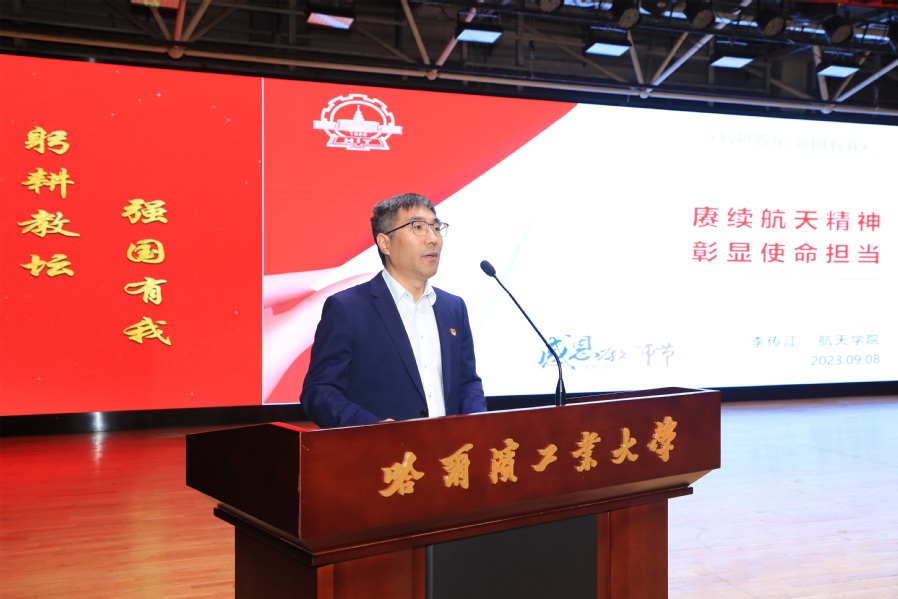韩杰才指出,一代代哈工大人传承赓续哈工大“八百壮士”精神,把个人发展同国家和民族的前途命运紧紧联系在一起。新百年以来,学校深入学习贯彻习近平总书记贺信精神,深刻把握“在教书育人、科研攻关等工作中,不断改革创新、奋发作为、追求卓越”的重要要求,大力营造了尊师重教的良好氛围,全面深化队伍建设改革,深化以师生为中心的发展理念,始终坚持卓越导向,教师成长获得感、生活幸福感全面提升,广大教师卓越发展的内生动力全面激发。面向新征程,广大教师要坚持躬耕教坛、强国有我,更加坚定、更加自觉地牢记初心使命。