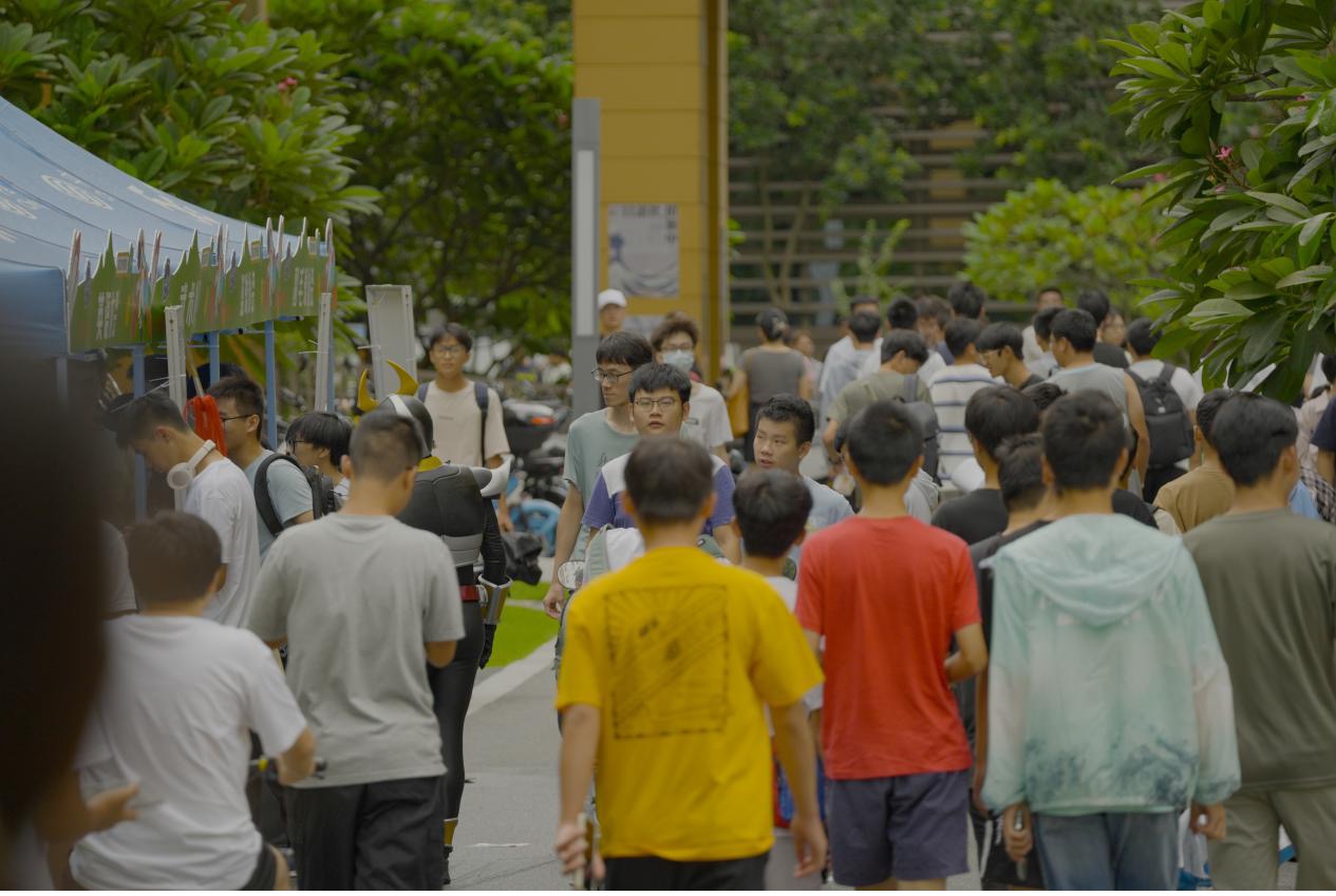 【哈工大(深圳)宣】(校区团委/文 学生全媒体中心/图)9月9-10日,哈工大深圳校区2023年学生社团招新活动在荔园7-10栋宿舍楼下举行,38个学生社团“大招”频出,十八般武艺展示各自特色,新生们穿梭在各个招新点,探寻多彩校园生活。