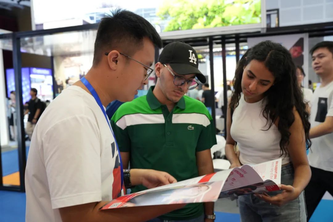 来自电子与信息工程学院的大二学生罗筠渝和同学结伴而来,先后咨询了法国、意大利等国家的院校。他希望在研究生阶段前往欧洲深造,为此,还刚刚申请了明年暑假前往德国的研学项目。“留学要趁早做规划。这次展会的举办很及时,通过面对面交流,我心里踏实多了,接下来就要全力以赴向目标冲锋了。”