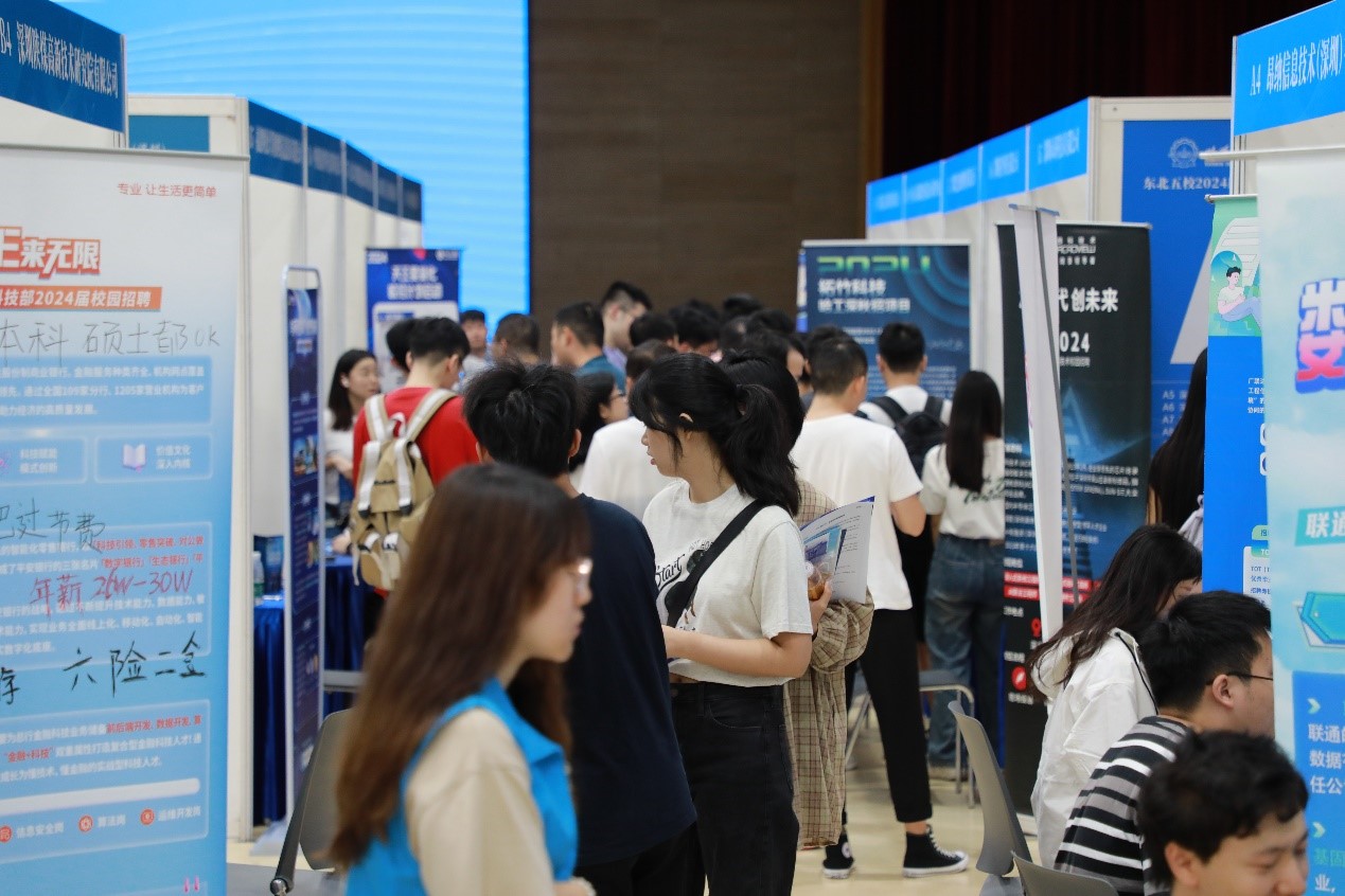 当天,中国航天科技集团、中国航空工业集团、中国船舶集团、中国中车集团、中国电力建设集团、中国建筑集团、一汽集团等央企及其下属公司,上海电气、深圳环境水务、中兴、TCL、浪潮、美的等知名企业纷纷来到现场。单位数量多、覆盖行业广……招聘会为同学们实现充分高质量就业提供了有力“助攻”。