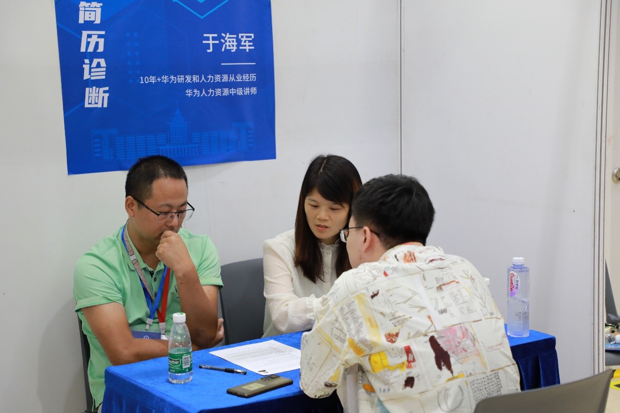 在招聘会现场,几个特别的展位吸引了同学们的注意。在简历诊断和就业咨询点,来自不同单位的资深HR变身诊断师和咨询师,与同学们面对面畅谈职场“二三事”,让求职过程中稍有“忐忑”的同学安心了许多。