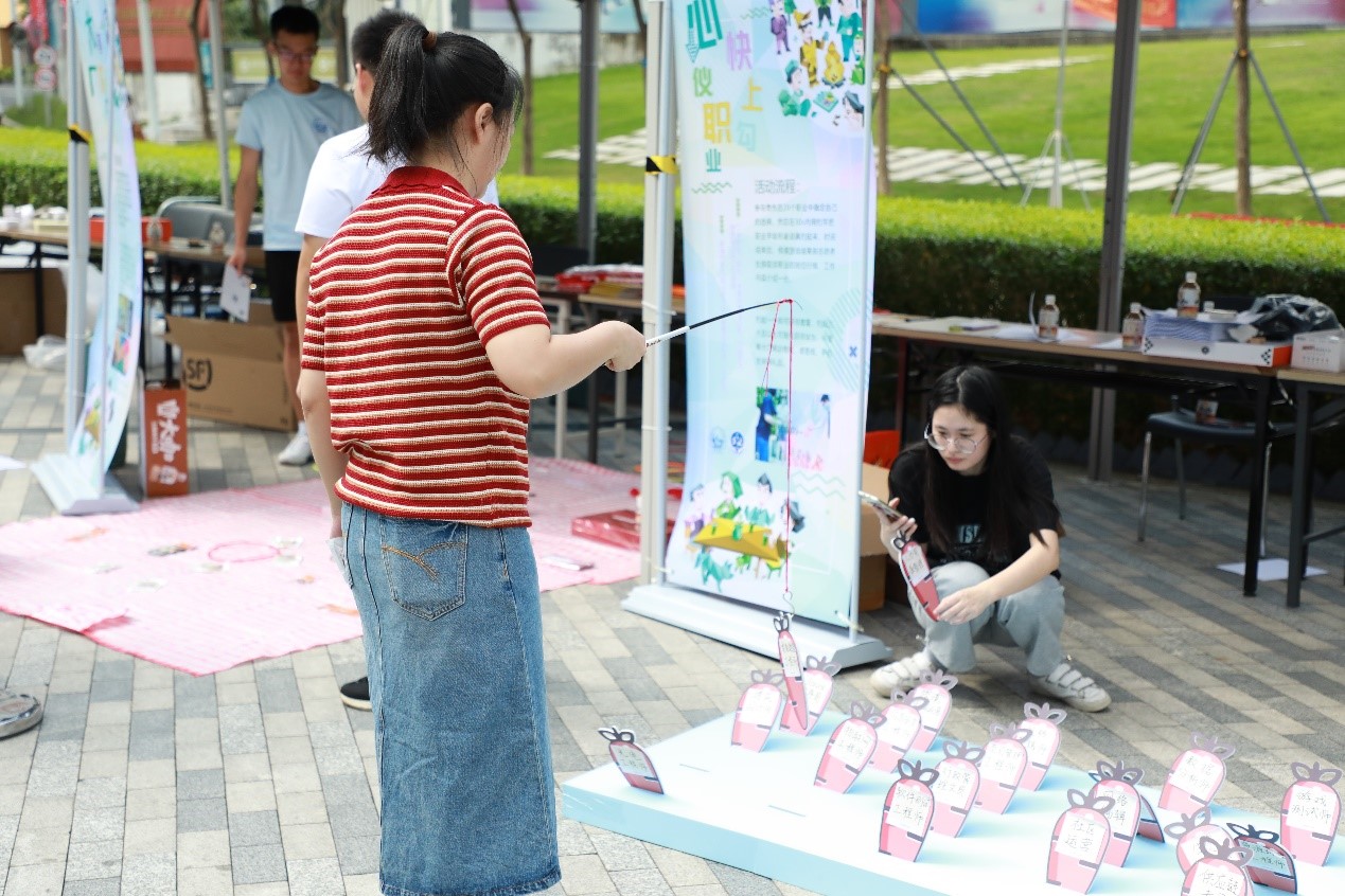 “你是‘e人’还是‘i人’?”“如果在团队项目中遇到冲突你会如何处理……”在“趣味offer投壶”“电梯演讲”“心仪职业快上钩”等近10项趣味活动中,同学们探索性格“奥秘”、学习求职经验,共上一堂趣味十足的就业辅导大课。