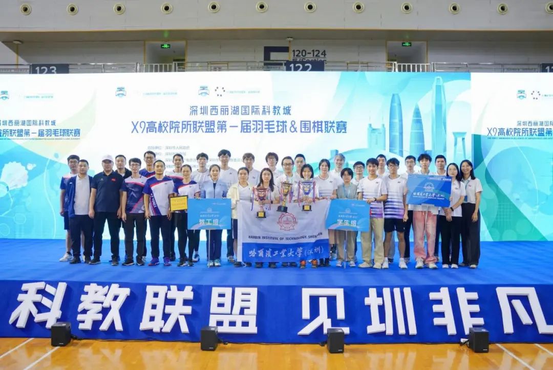 羽毛球联赛和围棋联赛是继赛艇联赛之后,X9联盟今年推出的又一重大品牌赛事,旨在通过多样化的体育项目,让“体育热”持续扎根深圳校园。X9联盟第一届羽毛球、围棋联赛比赛为期4天,深圳大学、哈工大(深圳)、南方科技大学、清华大学深圳国际研究生院、北京大学深圳研究生院、天津大学佐治亚理工深圳学院、深圳理工大学(筹)、鹏城实验室、香港中文大学(深圳)等9所高校院所分为教工组、学生组两个组别展开角逐。哈工大(深圳)羽毛球队、围棋队从近300名羽毛球选手和近100名围棋选手中脱颖而出,分别获得羽毛球联赛学生组季军、围棋联赛学生组团体冠军等荣誉。