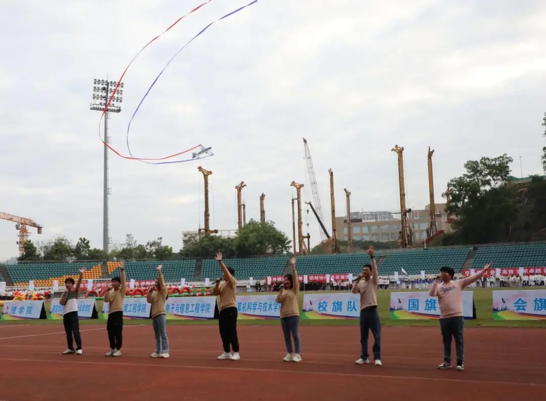 各方阵的“show time”主打“家国情怀”“专业特色”与“青春活力”。军体拳表演尽显青年学子红心向党、强军报国的拳拳之心,校区十佳歌手带来合唱《乘着音乐的翅膀》,青春旋律伴与南工御风航模队的飞行特技表演遥相呼应、引人打卡。体育舞蹈节目表演既有力量美又有灵动美,可谓又美又飒。各学院方阵同样使出“十八般武艺”,五星红旗、无人机、火箭模型、电路图、武术、国风舞蹈、街舞……当这些元素交织在一起,现场观众不禁发出“赞叹三连”:这场运动会“太哈工大啦”“太有活力啦”“太难忘啦……”