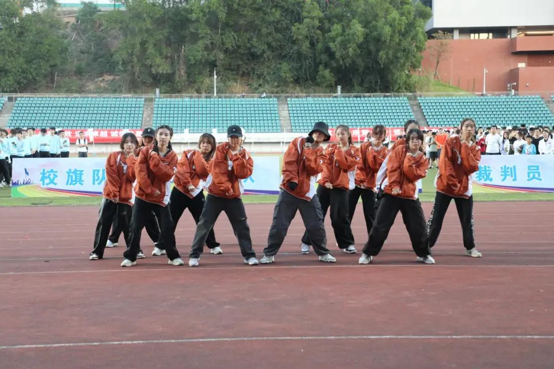 闭幕式上,学生艺术团和“哈哈”舞团带来舞蹈表演。运动会伴随着赤朱丹彤的落日告一段落,但哈工大(深圳)师生挥洒汗水、全力向前的激情却弥散开来。