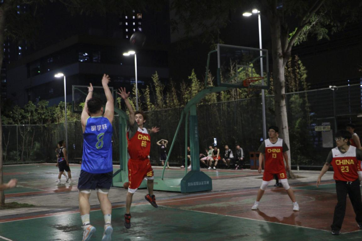 操场上,一个个跃动的身影、一声声激动的呐喊、一个个胜利的微笑交织成最美丽的青春颜色。学子们在跑动、传球、投篮中展示着团队默契,持续巩固军训成果。