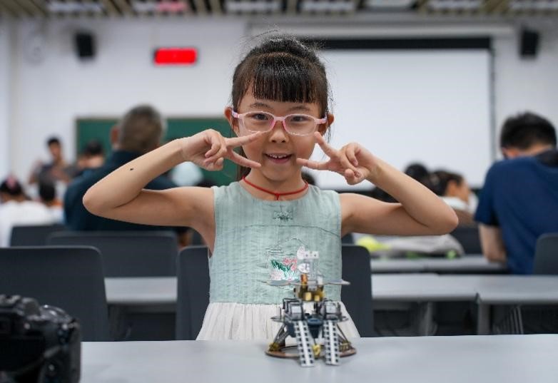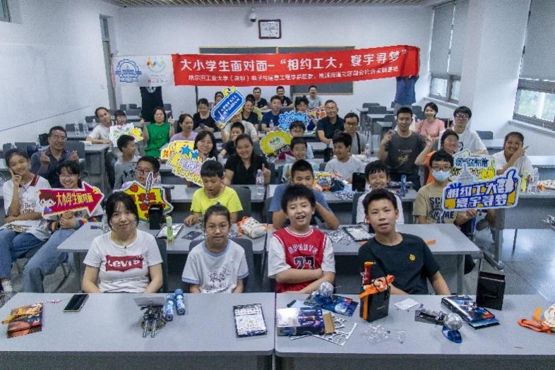 【哈工大(深圳)宣】(纪翔天/文 陈怡欣 梁展博/图)在第九个“中国航天日”到来之际,哈工大深圳校区电子与信息工程学院团委学生会、南山区桃源街道三区融合实践基地共同举办“相约工大,寰宇逐梦”中国航天日主题公益活动。来自桃源街道的中小学生走进校区,学习航天知识、感悟航天精神,在心中种下了一颗“航天报国”的种子。