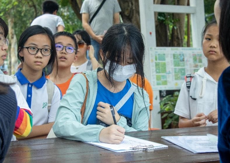 在电信学院志愿者的带领下,中小学生走进校园动人画境,一睹大学校园靓丽风采。从青翠的“悠然见荔园”出发,穿过鳞次栉比的宿舍楼,路过昂然屹立的校训石……移步换景,一路欢声,优雅的校园环境、洋溢的人文气息、深厚的大学底蕴,让大家兴奋不已。在校区综合展馆,志愿者用生动的讲解带领中小学生“穿越时空”,了解哈工大百年发展历史与深圳校区二十余年来的发展历程。