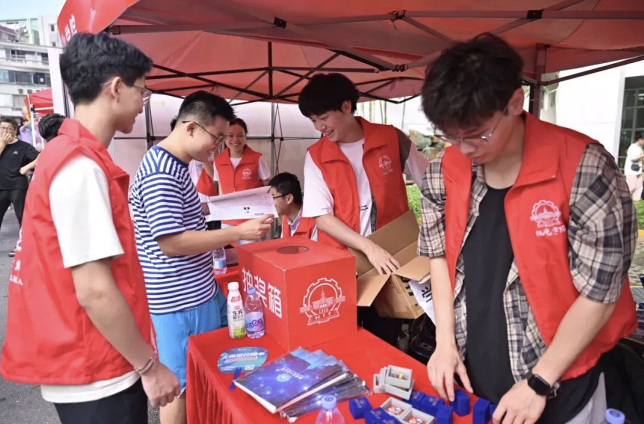 迎新现场,机器人展示、校史知识问答等活动满是哈工大特色与专业特色,帆布袋、T恤、马克杯等新生专属文创让人眼前一亮。荔园四食堂还举办了美食节活动,美食飘香吸引了众多人品尝。报到这天,不少新生和家长兴奋地拍下“九宫格”,在朋友圈迫不及待地晒出在哈工大深圳校区第一天的体验。