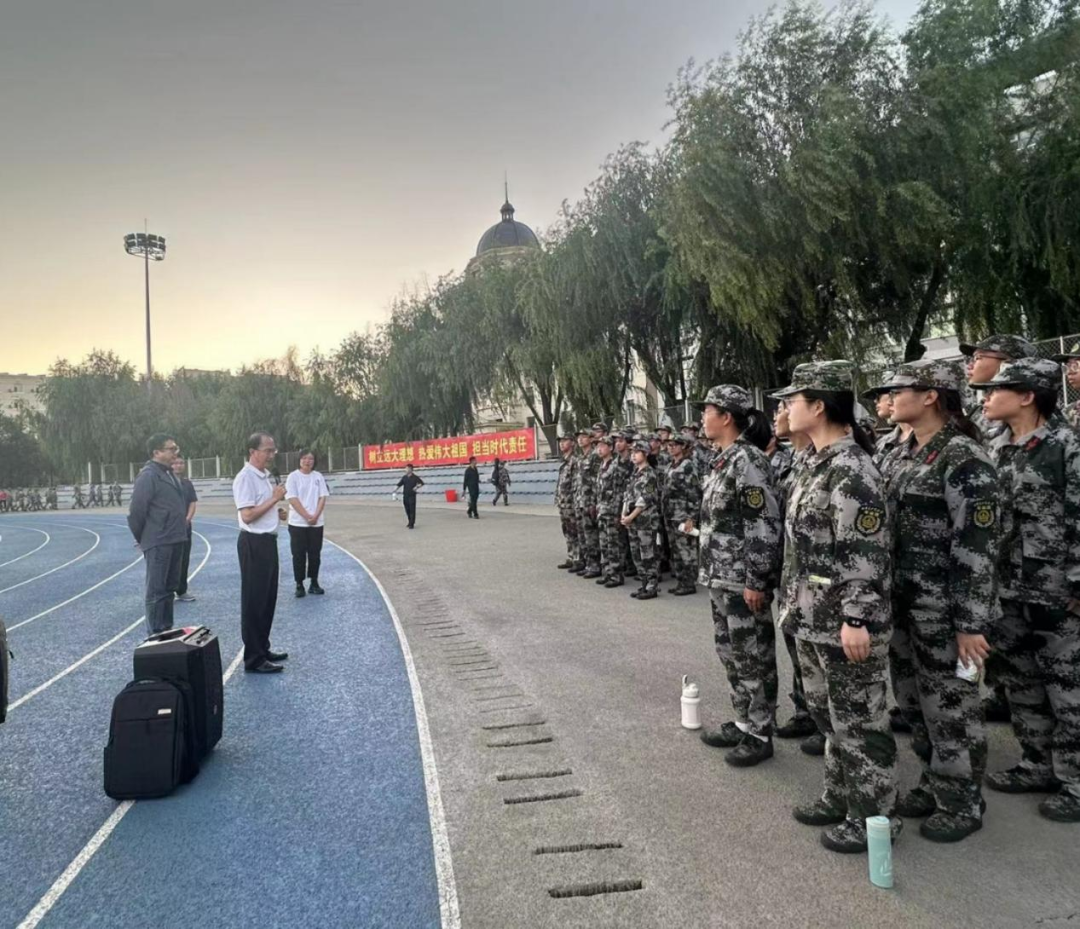 黄玉东走进训练场地,向承训教官与工作人员表示衷心感谢,向正在进行军事训练的同学们表示亲切慰问,对大家展现出的纪律意识和拼搏精神给予肯定。他说,军训不仅是对同学们身体素质的考验,更是一次对意志的磨炼。希望大家把军训中磨砺的坚韧品格融入今后的学习中,勇敢面对成长路上的各种挑战,不断追求卓越、再创佳绩,争做时代“尖兵”。