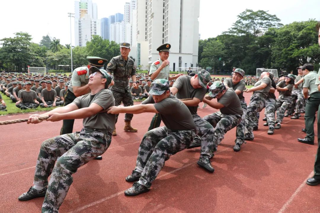 当天,参训同学还进行了一场火热的拔河比赛。操场上,同学们身着迷彩服分成两队,紧握长绳,“求胜欲”写在了大家坚定的眼神里。哨声一响,双方队员齐心协力,奋力向后拉拽。现场气氛紧张热烈,加油声、欢呼声此起彼伏。拔河比赛既锻炼了同学们的体魄,培养了团队协作精神,也为大家留下一抹难忘的“军营回忆”。