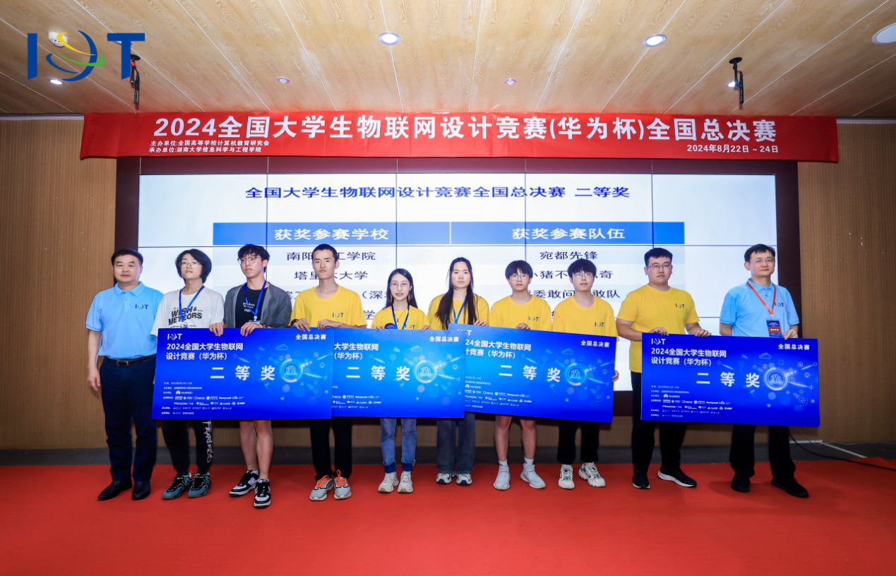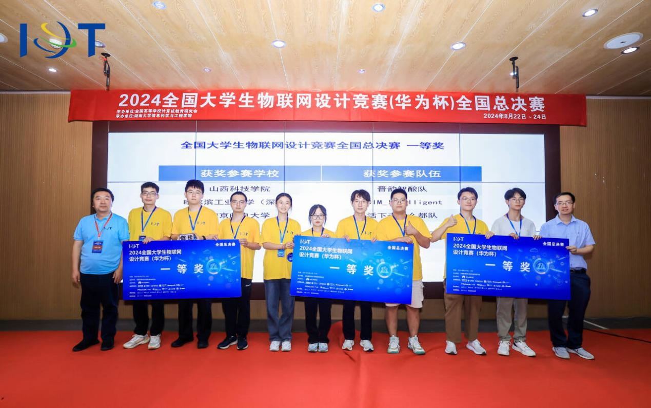 【哈工大(深圳)宣】(李春阳 文/图)8月24日,2024全国大学生物联网设计竞赛(华为杯)全国总决赛落下帷幕。哈工大深圳校区“SCIM_Intelligent队”的阎相君、陈豫、李嘉琪、杜亚龙和“评委敢问我敢队”的李春阳、许逸桐、张志涛、区文灏分别在仇洁婷、夏文、杨新聪三位老师指导下,荣获全国总决赛一等奖以及全国总决赛二等奖。