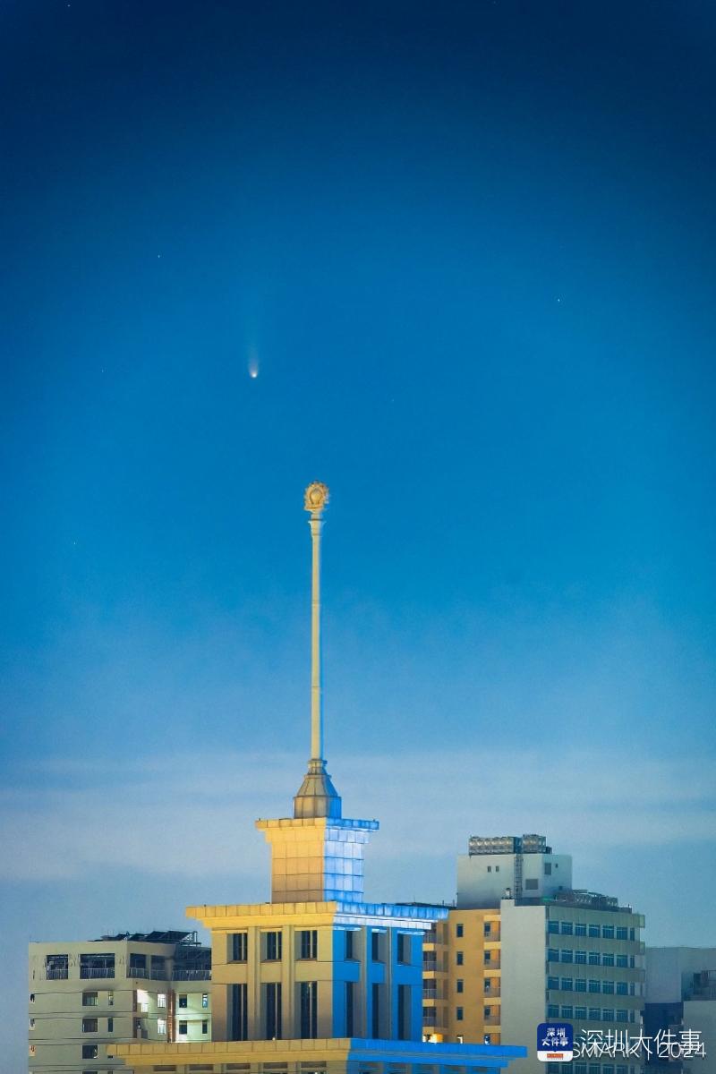 近期,这颗彗星还将在日落后的西边天空现身。不过,肉眼观测时间较短,大约只有十到二十分钟的窗口期。在深圳,建议大家到西涌海边,或是西部地区海边等空旷的地方,用双筒望远镜、相机或者手机相机观测,条件好的地方肉眼便可直接观测到。