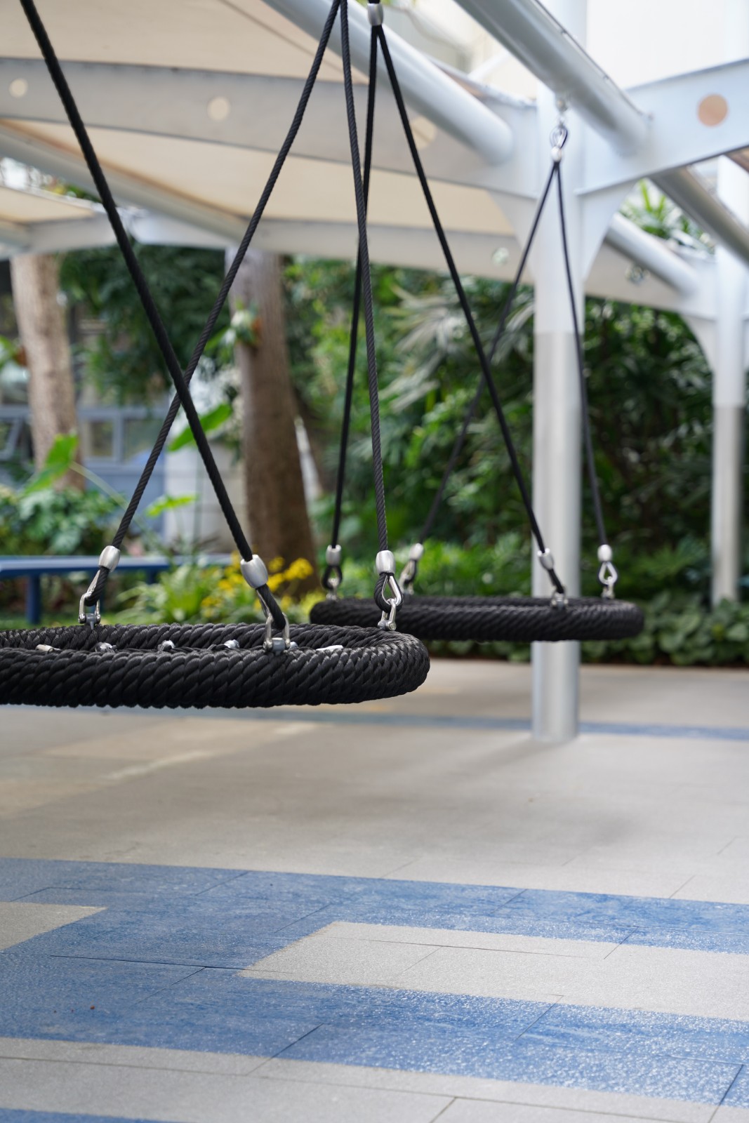 “蓝飘带”的灵感,源于树林下生长出一条自由灵动的飘带。在有限的空间中,用一抹舒缓身心、沉稳宁静的“哈工大蓝”串联场地,形成一片可供大家休憩、讨论、“放空”的公共空间。