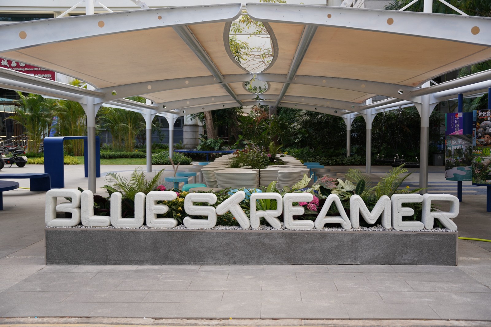 “蓝飘带”的前身,是校区荔园一食堂门口的停车棚。在深圳市城市管理和综合执法局、深圳市公园管理中心的指导下,南山区城市管理和综合执法局担任主办单位,哈工大深圳校区和深圳市土木再生城乡营造研究所共创了“蓝飘带”共建花园。