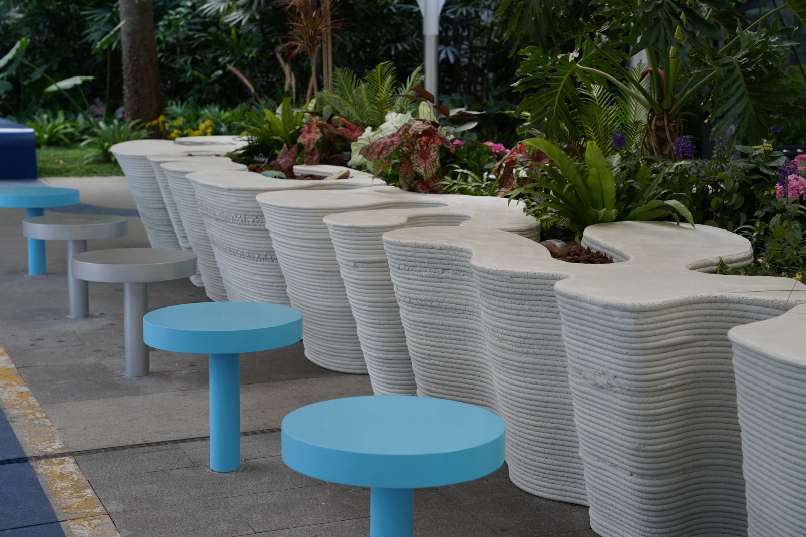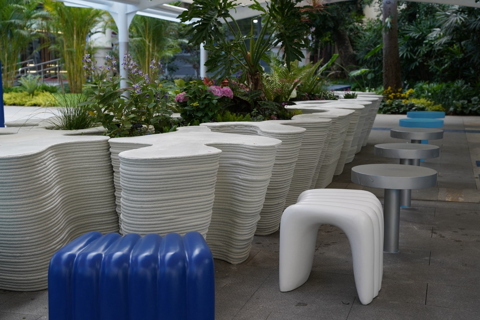 从建设“蓝飘带”的想法萌生以来,团队成员们开展了大量社会调查,在校区举办了方案路演,在设计和建设中引入了先进的数字化设计和智能建造技术,借助Grasshopper工具对花园中心构筑物进行参数化建模,运用前沿的3D打印建造技术实现混凝土材料构筑物的自由曲线建造,同时组织了石头涂鸦、集体园艺等多项活动。