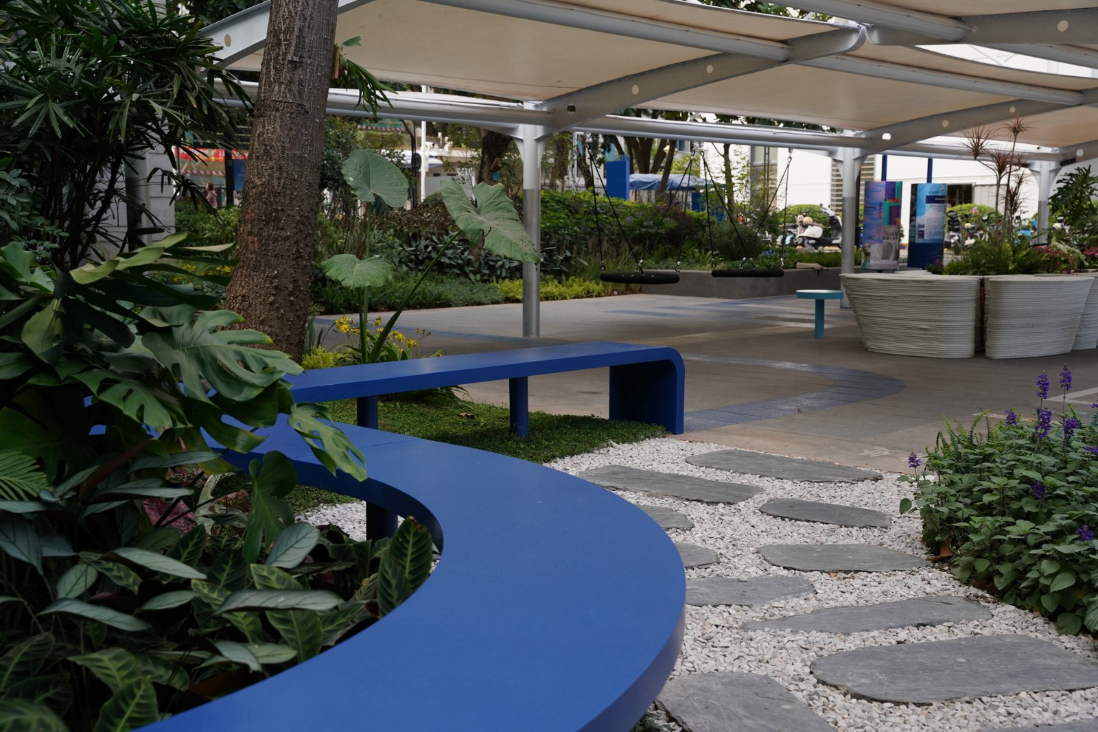 这是一条各方“共建”的飘带——共建花园是深圳市推出的一项创新设计实践项目,花园以社会公共空间为载体,鼓励专业力量和社会力量参与其中,通过“共商、共建、共治、共享”模式,为城市塑造温馨怡人的城市景观环境。