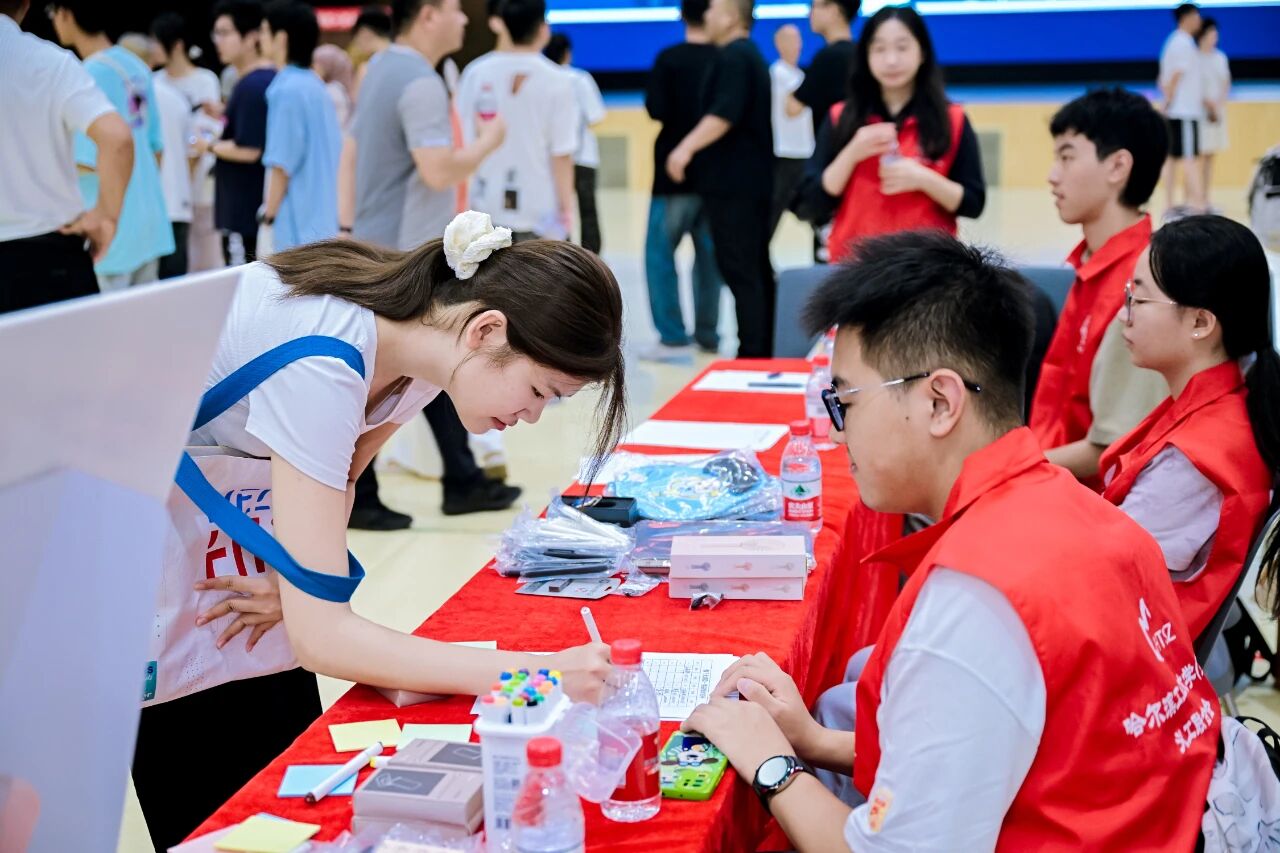 在本科生报到处学生活动中心,循环播放着的《哈工大之歌》让不少同学笑着分享到:“开学第一天就学会了唱校歌!”同样是在活动中心,本科新生所在的基础学部开展了套圈等趣味活动,并为本科新生发放学部“专属T恤”。校区十佳歌手带来了精彩的歌曲演唱,南工骁鹰战队带来的机器人表演吸引新生和家长掏出手机开启“拍拍拍”模式。值得一提的是,哈工大“AI辅导员”也来到了迎新现场,“我是一名大一新生,如何在大学中提升自己的能力?”“什么渠道能够了解到更多实践机会……”新生们纷纷前来体验这位有温度的“知心AI伙伴”。