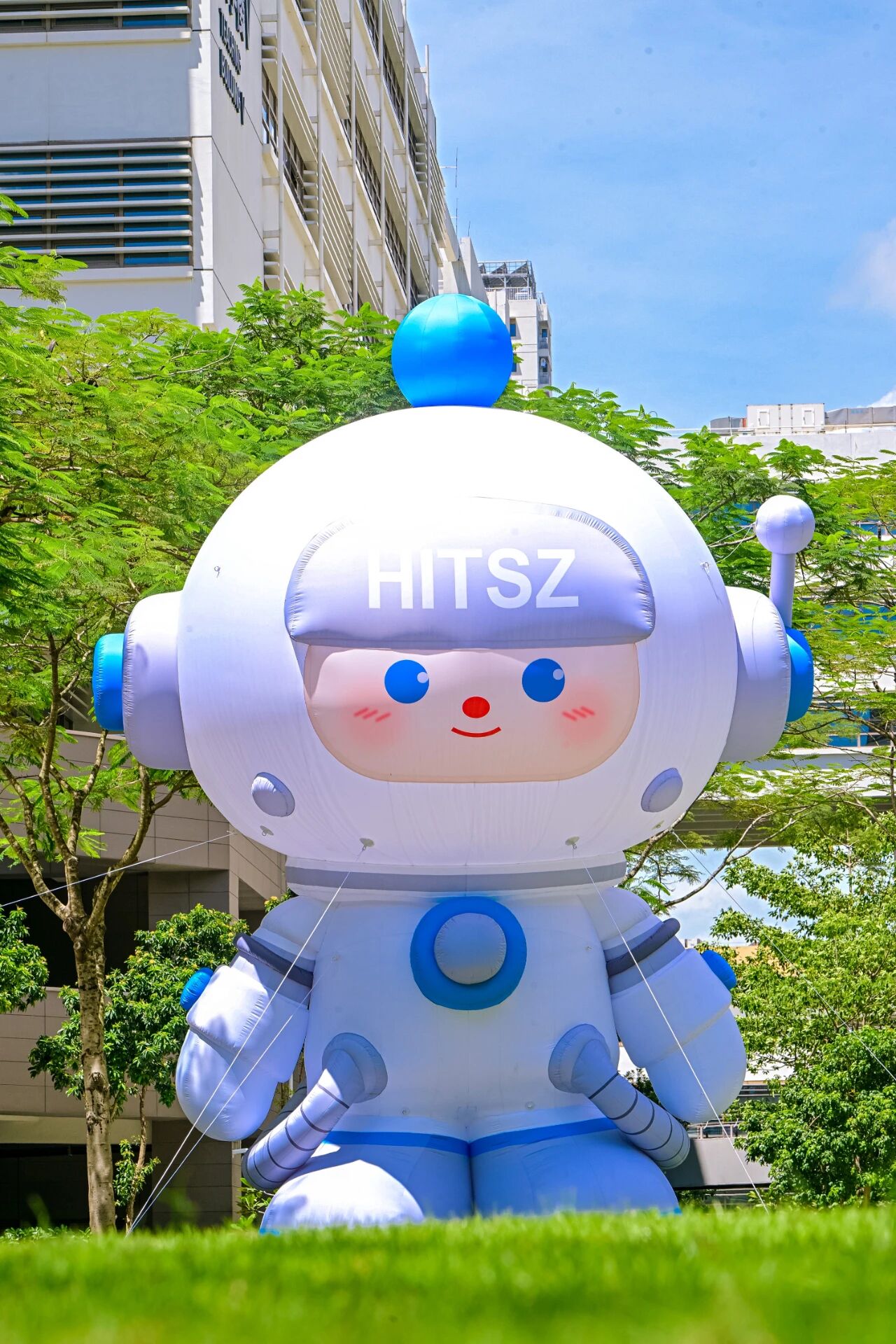 在深圳校区主楼前的草坪上,一个高达8米的充气玩偶成为了迎新季“顶流”。这是哈工大深圳校区首届校园IP形象设计大赛一等奖获奖作品“哈小探”,憨态可掬的小探正用自己的方式和新同学们打招呼——希望大家积极传承哈工大的“航天基因”,勇于创造和探索,在新征途上收获更多惊喜。与此同时,深圳校区首届新生校园“寻宝”活动于报到当天火热启动,同学们集齐与校区“地标”合影,便有机会得到首届校园IP形象设计大赛作品落地制作的T恤等文创产品。“寻宝”的过程,更是新同学们熟悉校园、结交友谊,提升爱校荣校意识的一场“探索之旅”。