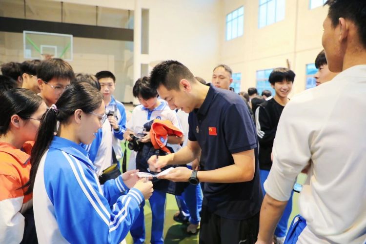 “冠军课堂”上,陈金与当地师生共同对打,在实战中针对大家进攻、杀球等技术进行指导,并就大家提出的体能训练、技术训练以及新手入门等问题进行解答。“授人以鱼不如授人以渔,我更想通过这两堂课将体育精神传递给孩子们,让他们感受到拼搏与热爱是实现梦想的‘金钥匙’。”陈金说。