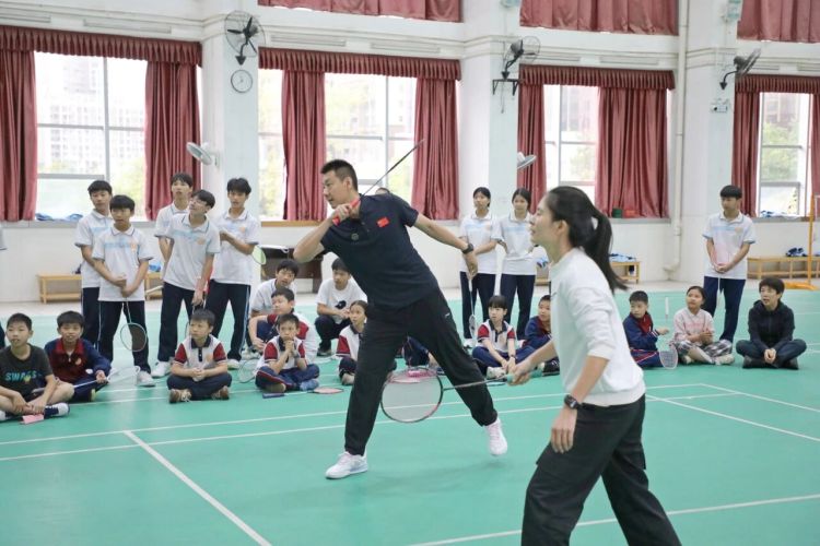 “世界冠军来啦!”11月12日,河源市东源县崇文学校、连平中学的体育馆内传来阵阵欢呼,正值“十五运”召开之际,一阵“体育旋风”刮进了哈尔滨工业大学深圳校区基础教育对口帮扶地中学。羽毛球世界冠军、哈工大教授陈金为当地中小学生带来了一堂精彩的羽毛球课。