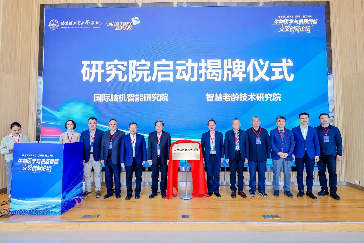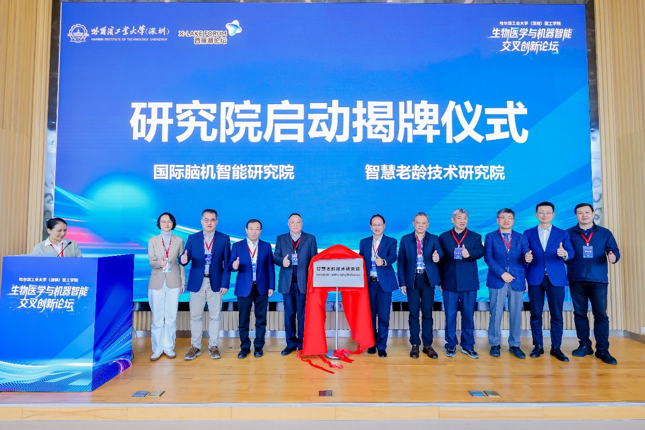 【哈工大(深圳)宣】(医工学院 文/图)日前,由哈工大深圳校区主办,医工学院承办,IEEE EMBS Shenzhen Chapter、广东省预防医学会人工智能专委会及深圳市医学工程与装备协会共同协办的生物医学与机器智能交叉创新论坛举行,活动期间,哈工大深圳校区两大医工交叉研究院——国际脑机智能研究院、智慧老龄技术研究院揭牌。